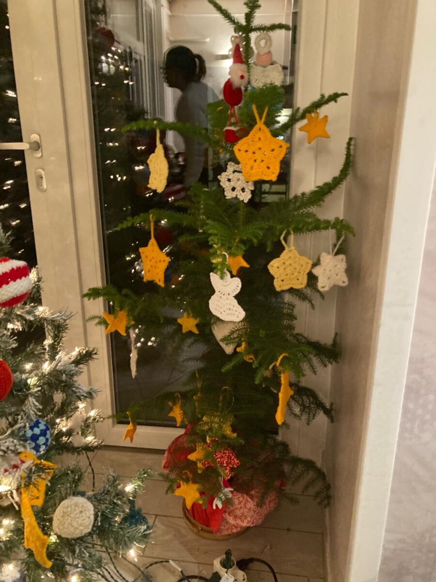 L’Associazione, poi, ha realizzato coloratissimi addobbi natalizi , tutti ad uncinetto, per decorare l’albero del salone della Struttura, una splendida ghirlanda ed un dono speciale: un angioletto bianco per ogni ospite,  sempre da appendere, da tenere come ricordo di un’esperienza unica.