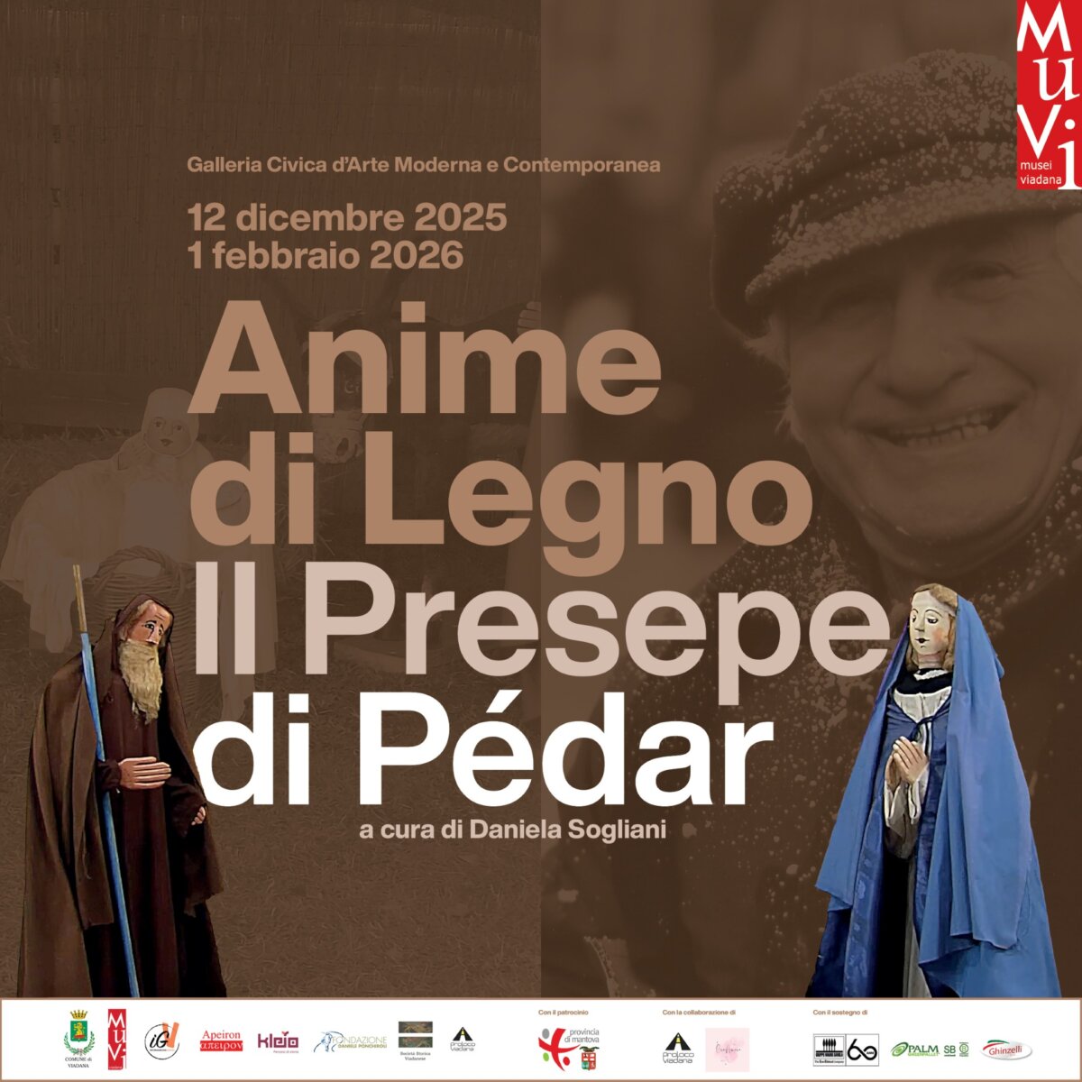 Venerdì 12 dicembre alle 18.30 al MuVi inaugura la mostra “Anime di legno. Il Presepe di Pédar”, composta da figure lignee che rappresentano personaggi, memorie e tradizioni della comunità viadanese.