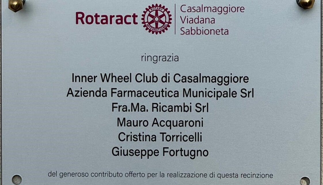 Nella mattina di sabato 10 gennaio, a Casa Giardino, il Rotaract Club Casalmaggiore Viadana Sabbioneta PHF ha inaugurato ufficialmente la recinzione perimetrale che la scorsa estate fece innalzare a protezione della struttura dall’impresa edile Goi Elio. Il progetto che ha condotto alla realizzazione dell’opera è stato intitolato “Il giardino recinto” e si è giovato dell’attiva collaborazione e del generoso sostegno economico dell’Inner Wheel Club di Casalmaggiore (presente all’inaugurazione tramite la presidente Marina Scomparin Troletti e la vicepresidente Chiara Chizzini), dell’AFM (rappresentata per l’occasione dalla consigliera Fabiola Kokaj), della società Fra.Ma Ricambi e dei benefattori Mauro Acquaroni, Cristina Torricelli e Giuseppe Fortugno.