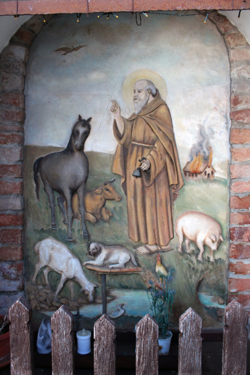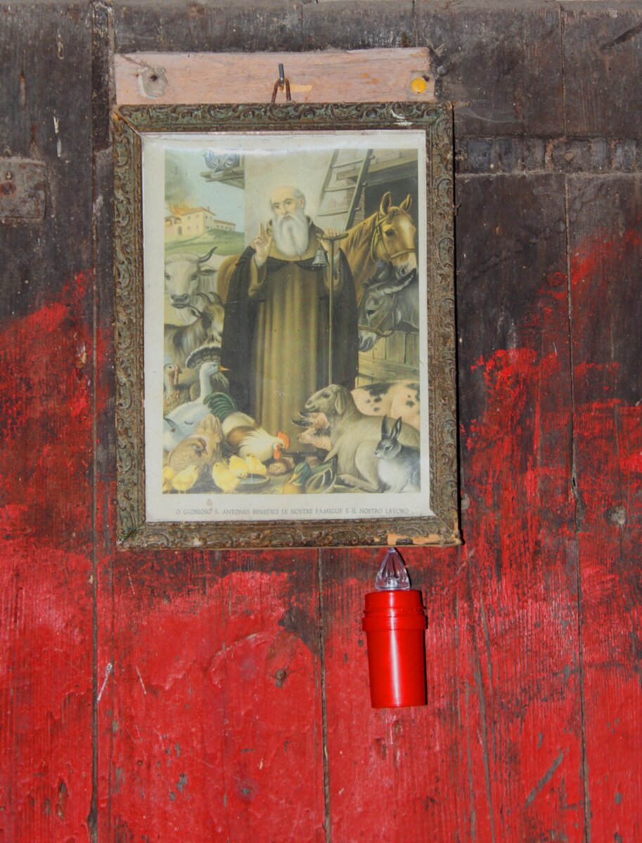 Sono parole arcane, segrete, difficili da comprendere: per questo non vanno ascoltate e gli animali non devono essere disturbati; anche perchè si racconta che nei secoli passati, chi l’ha fatto, sarebbe poi morto. Sempre per la vigilia, un tempo, anche il contadino più miscredente celebrava un rito singolare accendendo un cero di fronte all’immagine del santo nell’edicola a lui dedicata e posta, abitualmente, sopra l’ingresso principale delle stalle, recitando un rosario seguito da specifiche giaculatorie mediante le quali veniva invocata su tutte le famiglie di animali, di grande come di piccola taglia suino incluso, esistenti nella sua proprietà, una specie di protezione del santo stesso.