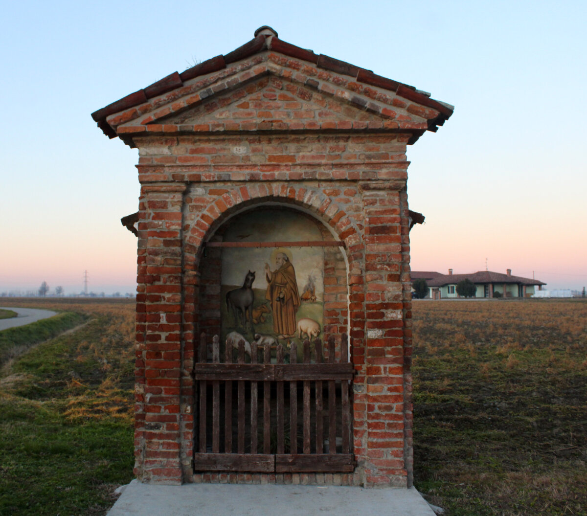 Discorso totalmente diverso invece per la suggestiva cappella dedicata al Santo si trova a Cappella di Casalmaggiore all’incrocio fra tre strade comunali ed è, con ogni probabilità, un ex voto. La piccola ma bella edicola è privata e sorge su terreni della famiglia Barbiani. La raffigurazione interna fu sistemata (probabilmente si trovava anche una raffigurazione precedente andata irrimediabilmente perduta nel tempo) nel 1987 grazie al volere di Maurizio Araldi, Gianni Cagna e Primo Amadini. L’opera fu realizzata dall’artista Ambrogio Ghezzi, autore peraltro di numerose testimonianze nei cimiteri della zona. A questo luogo di autentica fede popolare gli abitanti di Cappella, e non solo, sono molto affezionati e, per questo pochi anni fa è nato un comitato ad hoc che si è occupato del restauro ed è stato composto, tra gli altri, da Giuseppe Zani, Silvana Ghezzi in Lini col marito Giuseppe Lini, Giuliano Braga, Don Angelo Bravi, don Alfredo, Renato Barbiani e la figlia Valentina Barbiani.