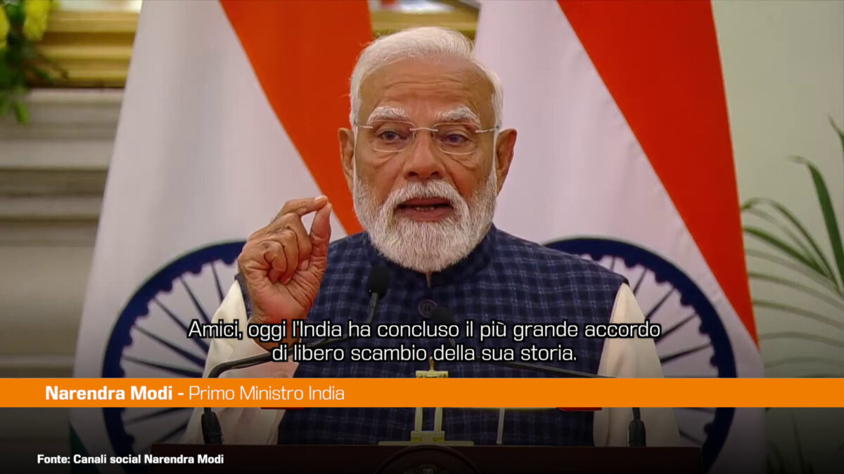NUOVA DELHI (INDIA) (ITALPRESS) – “Oggi l’India ha concluso il più grande accordo di libero scambio della sua storia. Questa storica intesa renderà più facile l’accesso dei nostri agricoltori e delle nostre piccole imprese al mercato europeo. Creerà nuove opportunità nella manifattura e rafforzerà ulteriormente la cooperazione nei nostri servizi”. Lo afferma Narendra Modi, primo ministro indiano, a Nuova Delhi, in occasione del 16° vertice tra l’Unione europea e