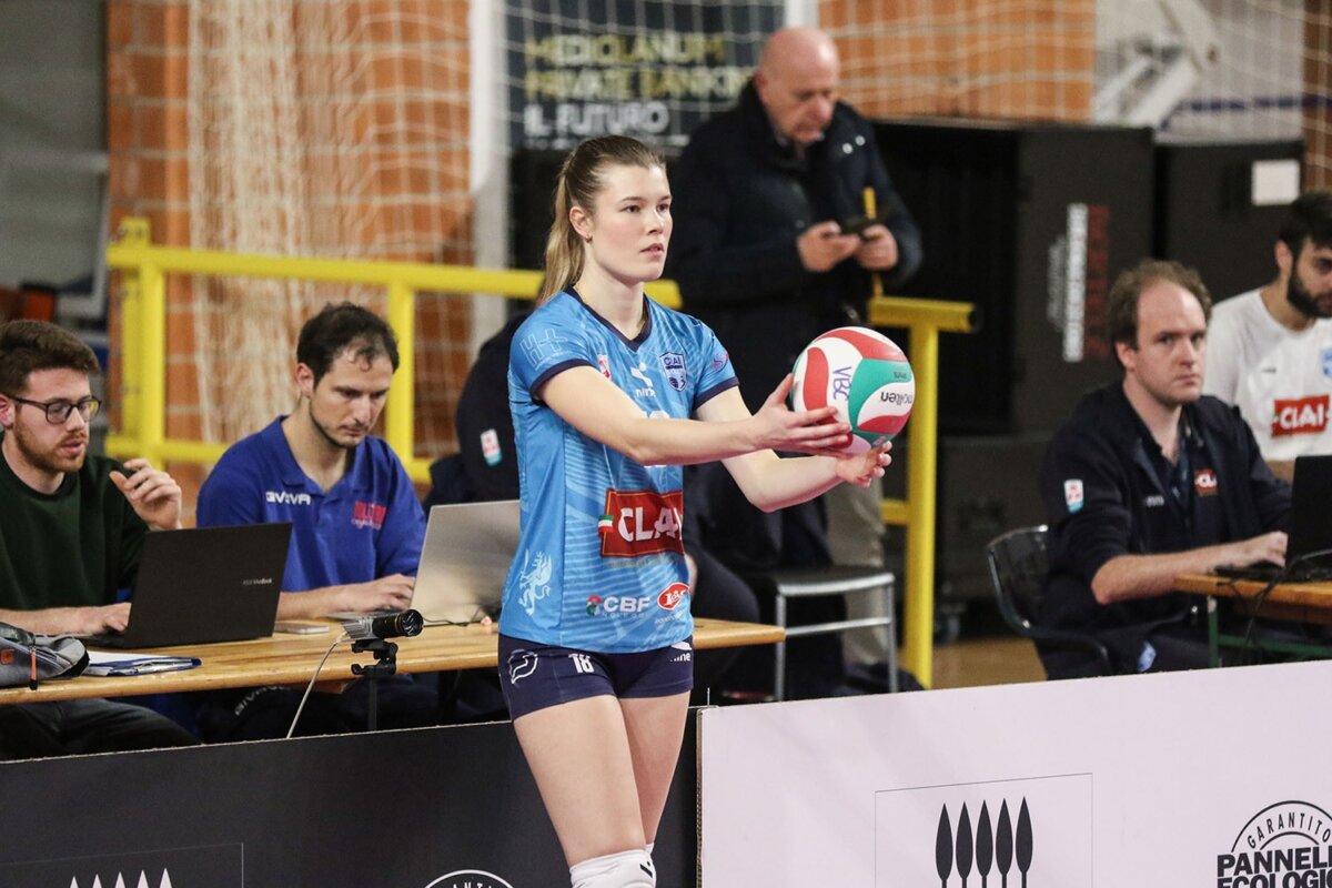Secondo set. Casalmaggiore apre la seconda frazione, Hoogers pareggia i conti 1-1. L’ace di Nwokoye fa 3-1. Arriva un altro ace, stavolta di Ravarini, 5-2. Dumancic stacca ad un piede e non perdona, 6-3. Gran botta di Ravarini, difesa immobile, 7-4. Murone di capitan Costagli che ferma l’attacco di Hoogers, 9-9, si gioca sull’equilibrio. Imola si porta sul 13-10 e coach Cuello deve chiamare time out. Si torna in campo e la battuta di Cavalli è out, 11-13. Le ospiti spingono forte sull’acceleratore e si portano sul 17-11, coach Cuello è costretto al time out. Malik manda a rete la sua battuta, 14-22. Busolini prova la fast ma il muro di capitan Costagli è granitico, 15-22, arriva poi l’ace di Neri, 16-22. Imola trova la palla del set, 24-16, Busolini chiude 25-16. Top scorer: Costagli e Nwokoye 3, Hoogers 5