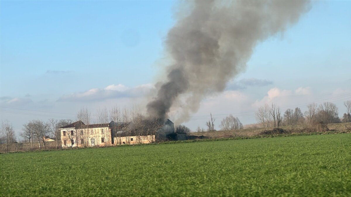 Nella foto il cascinale a fuoco