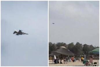 (Adnkronos) – In spiaggia a Dubai ombrelloni aperti e turisti in costume, in cielo scene di guerra. Un video condiviso sui social mostra un F-16E dell’aeronautica militare degli Emirati Arabi Uniti che piomba a bassa quota sulla spiaggia di Al Mamzar per abbattere un drone iraniano in avvicinamento.