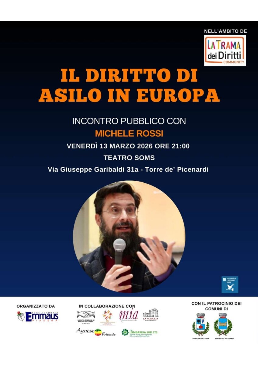 Il diritto di asilo in Europa: incontro pubblico il 13 marzo a Torre de’ Picenardi