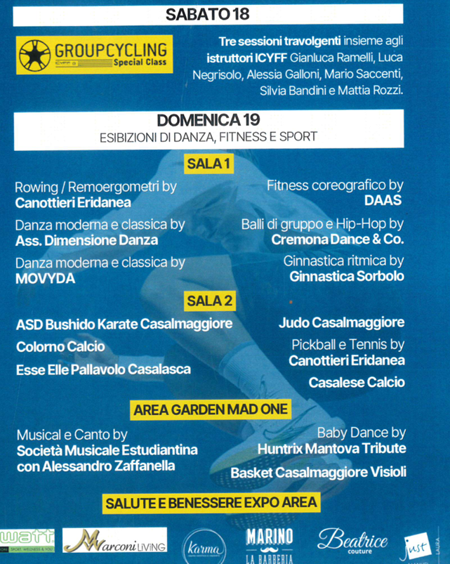 Ad arricchire l’esperienza anche un’ampia area espositiva wellness, con la presenza di operatori e brand del settore: sarà possibile acquistare prodotti fitness, scoprire le novità legate al benessere e usufruire di servizi dedicati alla cura della persona, tra cui barbiere con Just, parrucchiere ed estetista Karma.