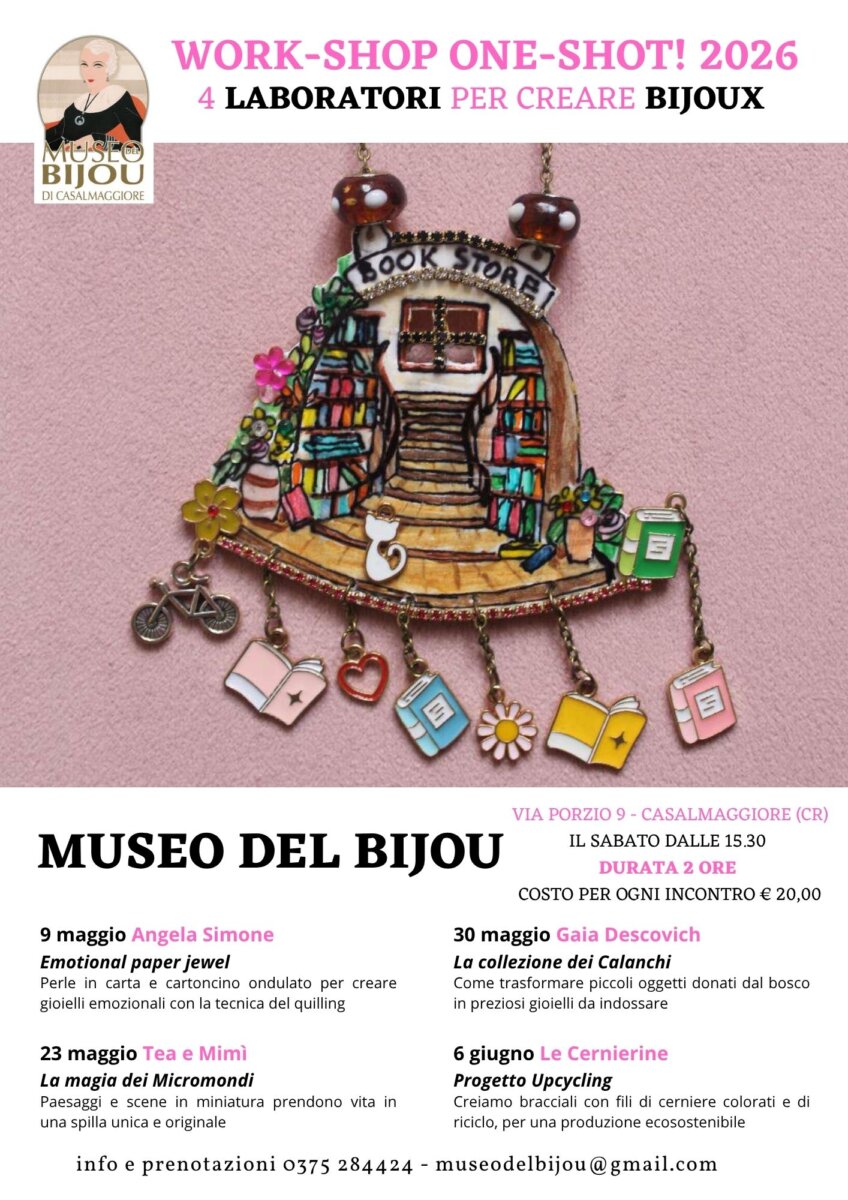 Per informazioni e iscrizioni è possibile contattare il Museo del Bijou al numero 0375 284424 o via e-mail all’indirizzo museodelbijou@gmail.com