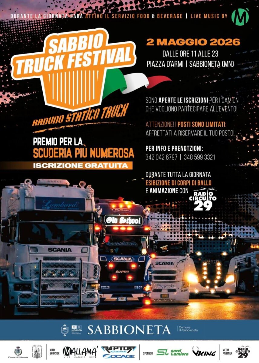 Dopo il grande successo dello scorso anno, torna il Sabbio Truck Festival, giunto alla sua seconda edizione e pronto a riportare a Sabbioneta tutta l’energia e la passione del mondo dei camion.